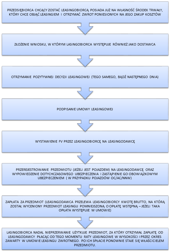 Czyli jest to taki sam leasing, który dobrze znasz, tylko że jesteś jednocześnie sprzedającym, jak i leasingobiorcą (korzystającym).